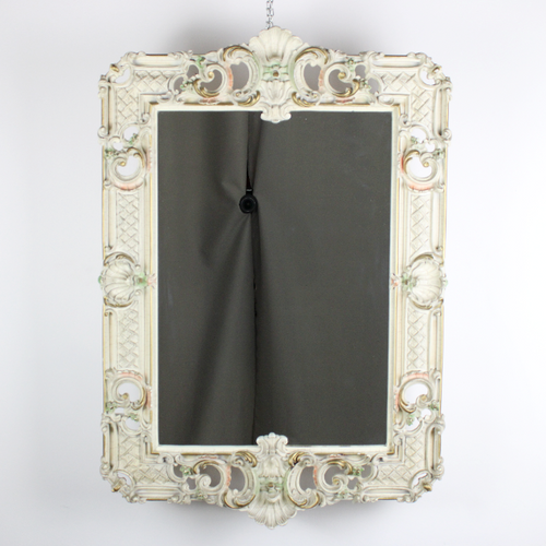 Specchio Vintage con Cornice in Legno Bianco Panna e Dettagli Intagliati