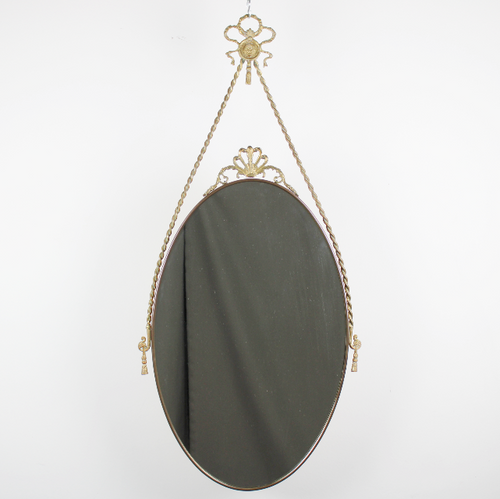 Specchio Ovale in Ottone Antico Vintage D'Epoca '900 con Effetto Corda Intrecciata