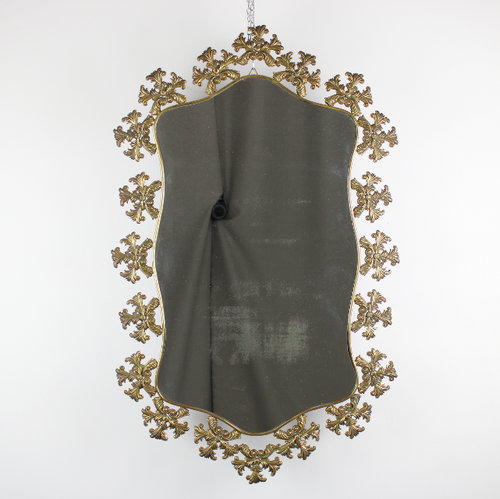 Specchio con Bordo Ondulato Cornice in Ottone e Dettagli Stile Floreale '900