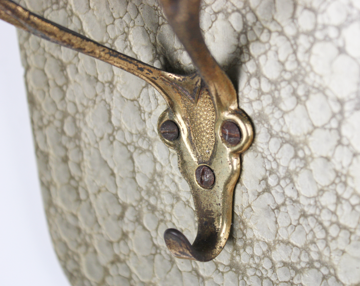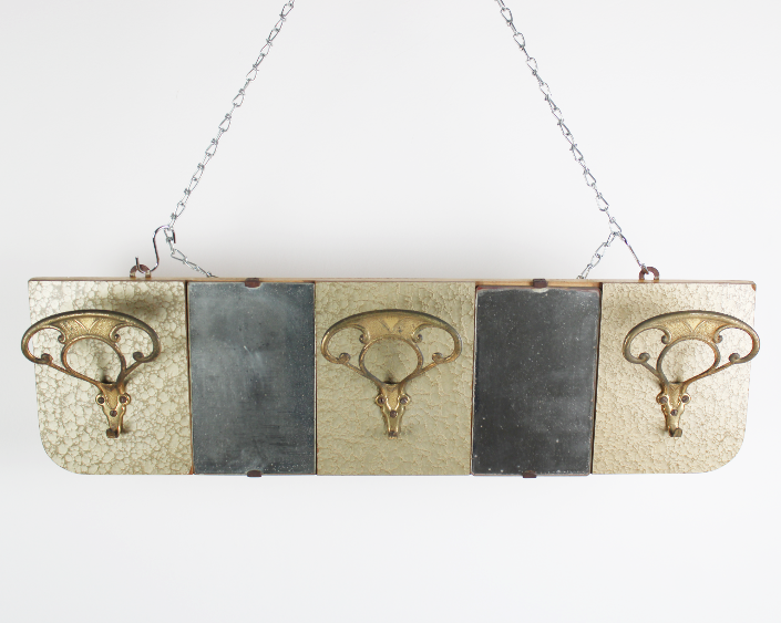 Attaccapanni vintage da parete in legno con tre ganci in ottone