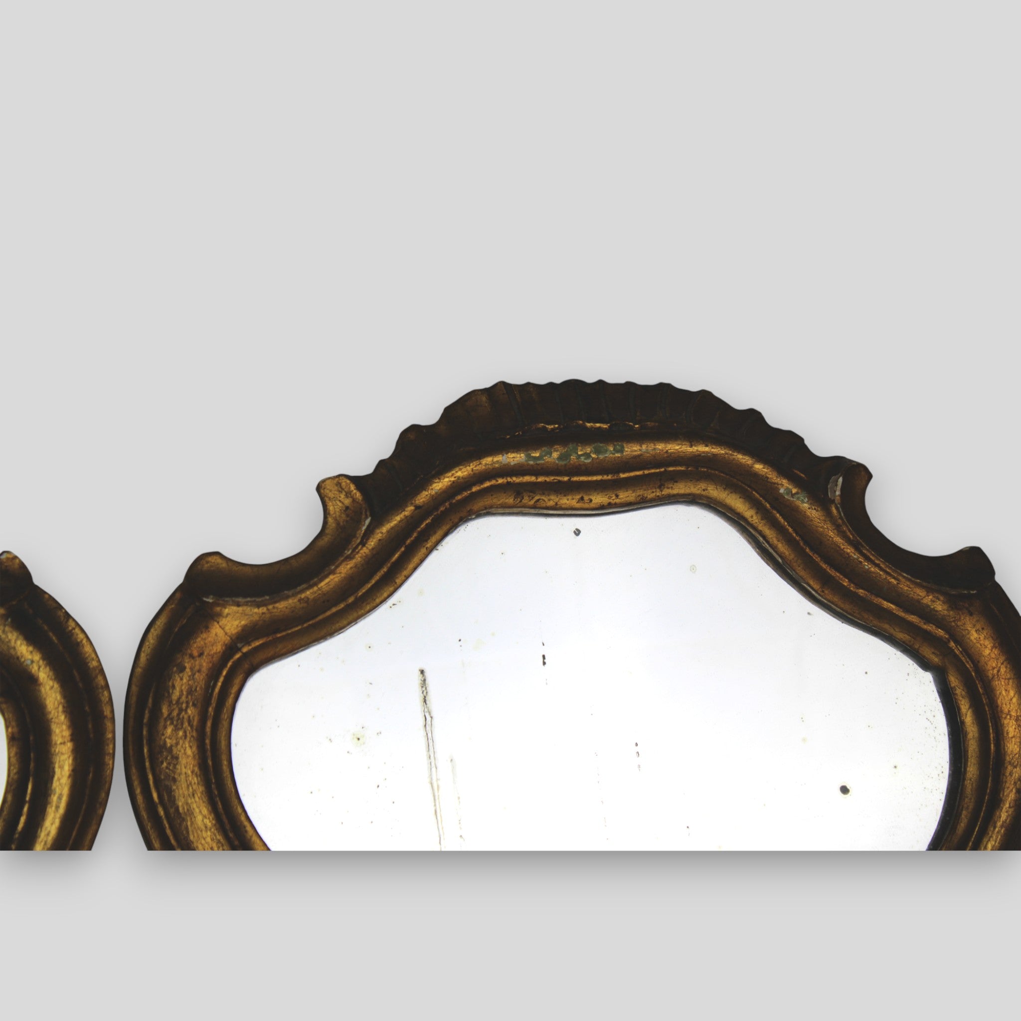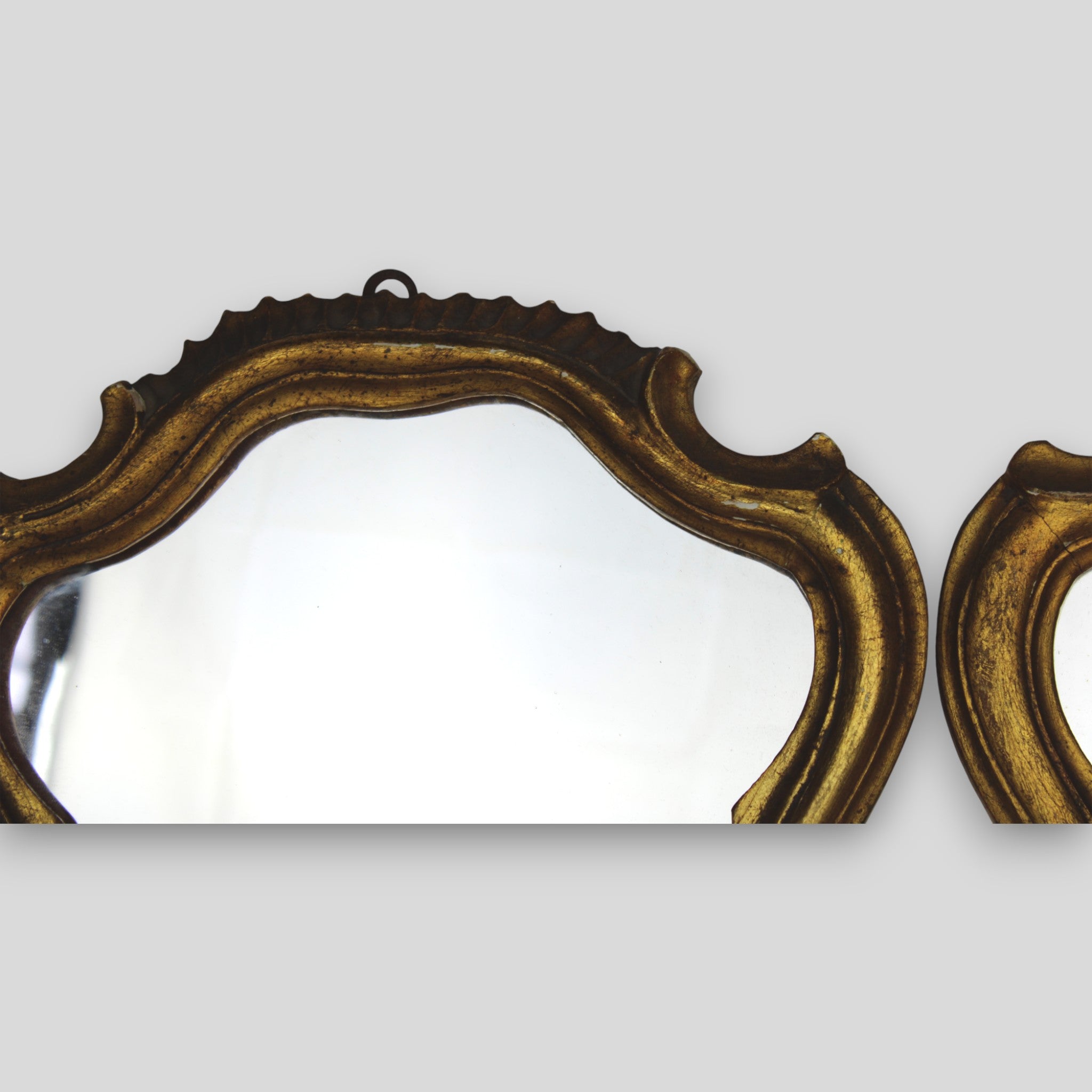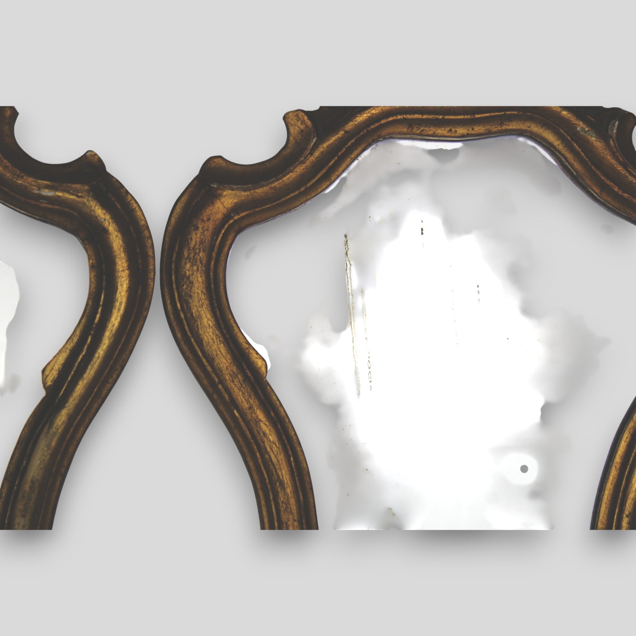 Set di due specchi dorati con cornici lavorate, ricche di dettagli in stile barocco. Ogni specchio, con le sue delicate curve e la finitura dorata, aggiunge una luce speciale a qualsiasi stanza, sia che vengano appesi uno accanto all'altro per un effetto simmetrico, sia che vengano usati in stanze separate per un tocco di lusso diffuso.