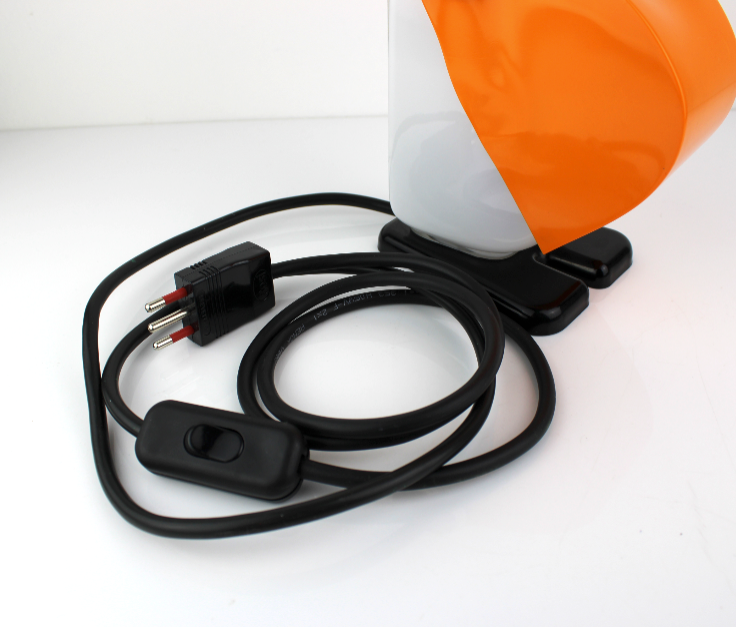 Lampada da collezione anni '70 disegnata da Fernando Cassetta per Tacman Made in Italy. Tucano dal becco arancione con occhi bianchi e neri. Lampada ormai difficile da reperire. Piedi, becco ed occhi sono in plastica mentre il corpo è di vetro opalino. L'apertura della lampada per la sostituzione della lampadina avviene tramite una rotazione di 45 gradi della base della lampada. L'impianto elettrico originale è stato sostituito con un impianto nuovo in quanto la plastica che rivestiva l'interruttore risultava rotta, verrà comunque spedito con la lampada.