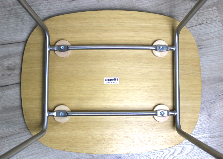 Coppia di sgabelli Morrison Stool della Cappellini disegnati dal designer Jasper Morrison. Gli sgabelli sono composti da una seduta sagomata leggermente concava in legno di frassino sbiancato in armonioso contrasto con le linee dritte e definite della base in sottile tubolare di acciaio inox satinato. Tutto esattamente come da foto.